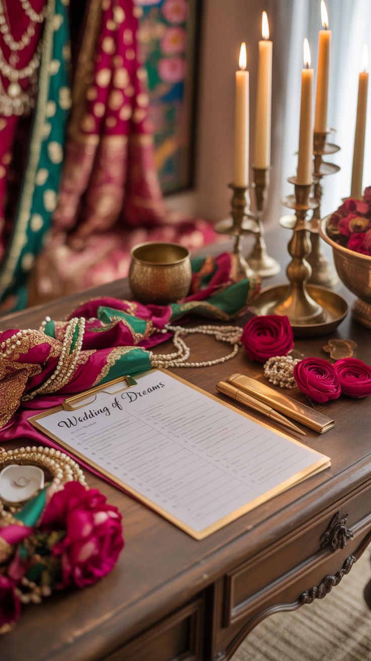 Begin your shot list. Think about: family groupings, must-have detail shots (jewellery, invitation card, footwear), ritual moments that matter most to your family.